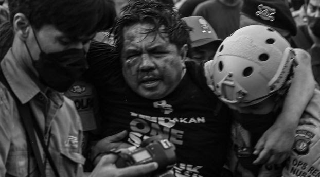 Pegiat media sosial (medsos) sekaligus Dosen Universitas Indonesia (UI) Ade Armando dianiaya oleh massa saat mengikuti demonstrasi mahasiswa oleh Badan Eksekutif Mahasiswa Seluruh Indonesia (BEM SI) di Komplek Parlemen Senayan.