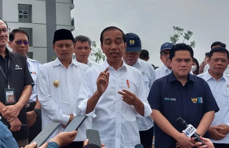 Presiden Joko Widodo usai meresmikan Hunian Milenial untuk Indonesia di Depok, Jawa Barat, Kamis (13/4/2023). (Antara/Mentari Dwi Gayati)