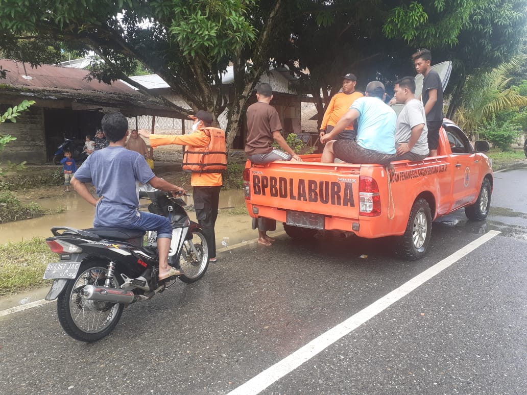 Badan Penanggulangan Bencana Daerah (BPBD) Kabupaten Labura telah menurunkan tim reaksi cepat untuk melakukan pendataan, evakuasi pengungsi dan rumah terdampak serta mendirikan tenda dapur umum, dibantu oleh TNI, Polri, aparat desa dan relawan.