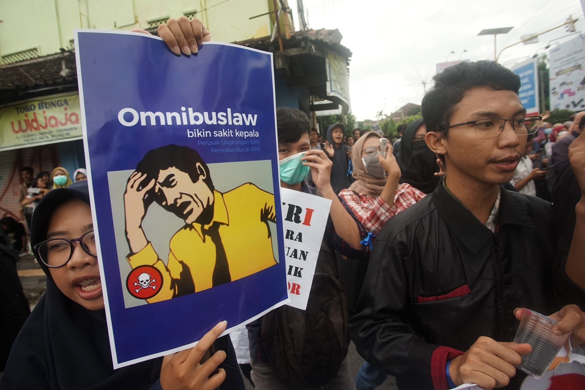 Dari di lokasi massa tampak berkumpul di Jalan Arief Rachman Hakim di dua arah. Sementara Kepolisian berkumpul di dekat Tugu Tani.