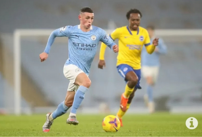 Brighton, dengan penguasaan bola yang baik dan lini belakang yang rapat, nyaris mengakhiri babak pertama dengan imbang, namun datang gol Foden menelang turun minum.