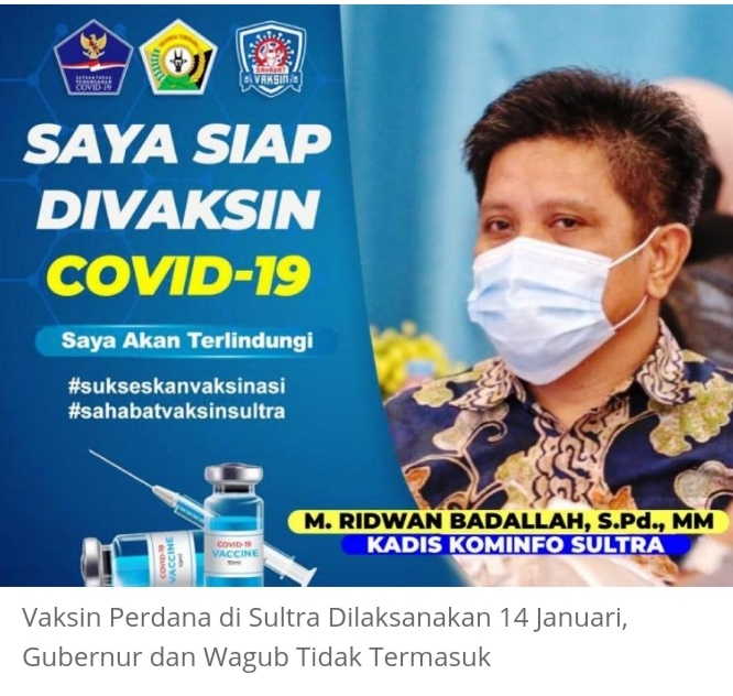 Kepala Dinas Kominfo Sultra, Ridwan Badallah, Rabu (13/1/1021) menjelaskan vaksinasi digelar di dua daerah, yakni Kota Kendari dan Kabupaten Konawe.