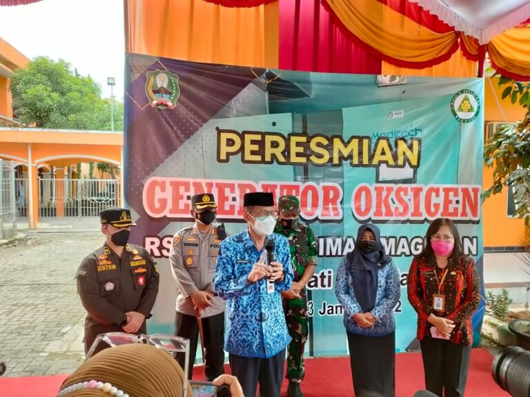 MAGETAN–Rumah Sakit Umum Daerah (RSUD) dr Sayidiman Magetan Jawa Timur, meresmikan Generator Oksigen Mandiri sebagai penunjang sarana dan prasarana kebutuhan bagi pelayanan kesehatan dalam perawatan pasien.