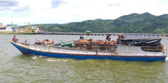 BIMA–Sebanyak 92 sapi dan seekor kambing yang ditangkap dan diamankan bersama dua kapal dari Labuan Bajo, Nusa Tenggara Timur oleh Pos TNI AL, dilepas kembali ke daerah asal melalui pelabuhan Bima, Minggu (14/2/2021) siang.