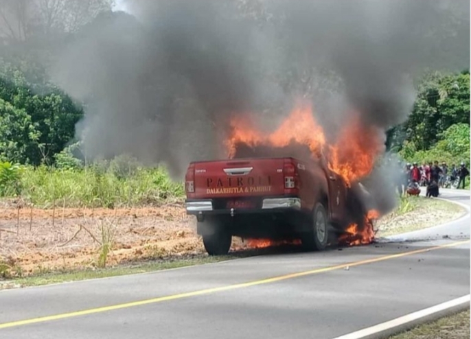 “Mendengar informasi tersebut, kami pun langsung keluar dari dalam hutan dan melihat benar mobil yang kami gunakan patroli dengan nomor polisi KB 8797 FA sudah terbakar,” tuturnya.