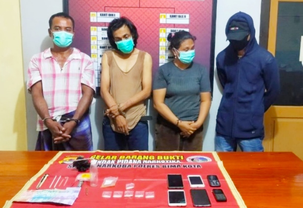 BIMA – Satuan Reserse Narkoba Polres Bima Kota, menangkap empat orang, saat mereka berpesta sabu, Sabtu (13/2/2021) sekitar pukul 00.10 Wita.