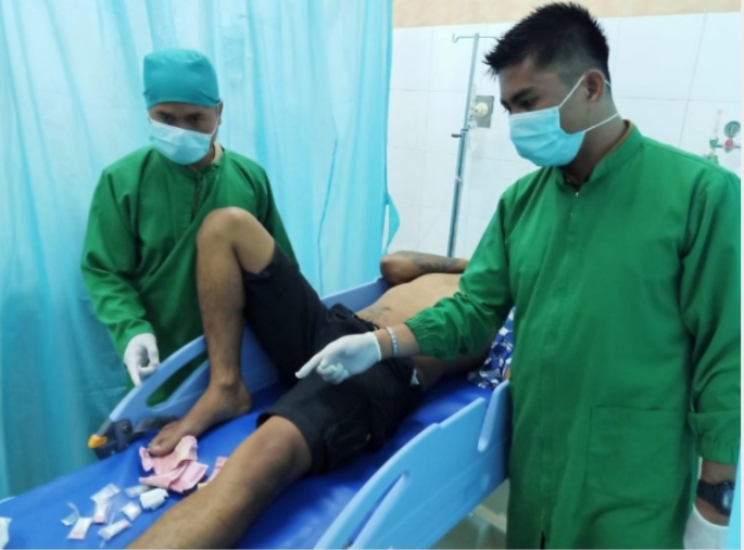 Saat di rumah sakit, ditemukan lebih kurang 32 paket kecil narkotika jenis sabu dan 2 paket sedang sabu serta beberapa uang pecahan seratus ribuan di dalam saku tersangka.