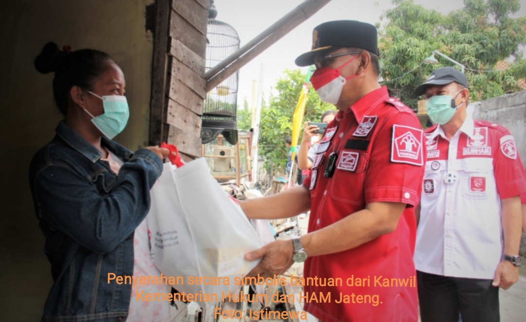 SEMARANG – Kantor Wilayah Kementerian Hukum dan HAM Jawa Tengah kembali memberikan bantuan kepada masyarakat yang terdampak Pandemi Covid-19, Jumat (13/8/2021).