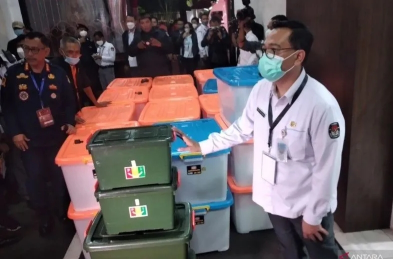 Berkas 40 parpol yang telah resmi mendaftar sebagai peserta Pemilu 2024. (Antara Photo)