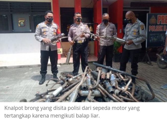 Ke-113 unit kenalpot itu dicopot polisi dari motor-motor warga selama September 2021. Umumnya sepeda motornya diamankan dari beberapa lokasi yang sering digunakan remaja untuk balapan liar dan tempat nongkrong.