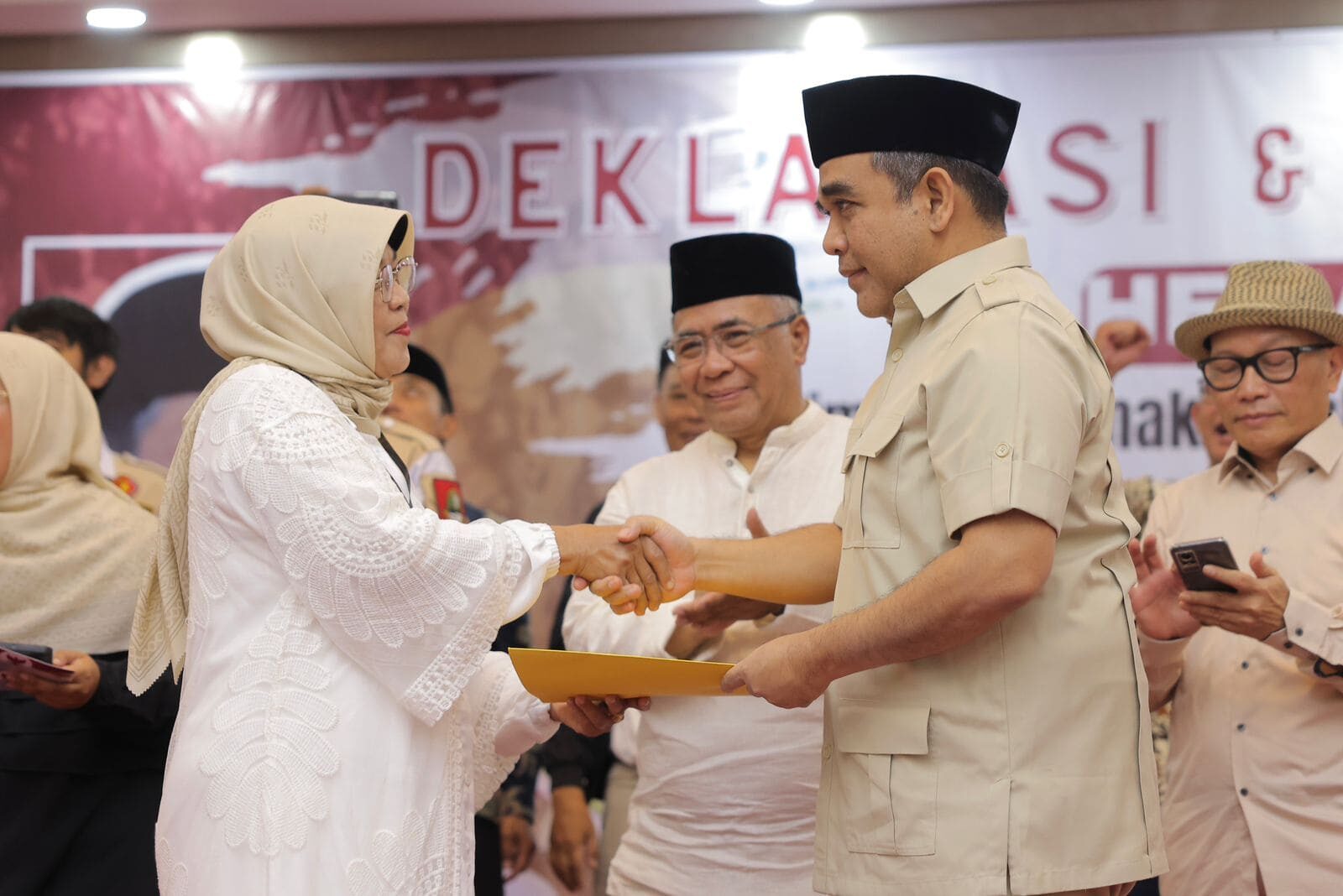Sekjen Partai Gerindra Ahmad Muzani menghadiri deklarasi dukungan ribuan emak-emak yang tergabung dalam 540 majelis taklim se Kota Bandung dan Cimahi, di Kota Bandung, Kamis (14/9). Di hadapan ribuan emak-emak Muzani menyampaikan komitmen Prabowo saat menjadi Presiden di Pilpres 2024.