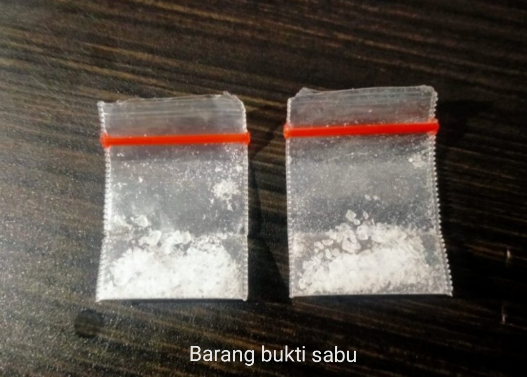 Dalam proses penggeledahan, Polisi mengamankan sejumlah barang bukti antara lain plastik klip bekas pakai dan peralatan isap sabu.