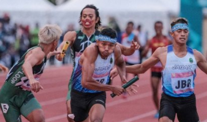 Dari nomor lari 4×400 meter estafet putra PON Papua di Stadion Atletik Mimika Sport Center, Kabupaten Mimika, Papua, Kamis (14/10/2021), Jawa Barat berhasil keluar sebagai pemenang. Di partai final, Halomoan EB, Umar Wira, M Ramdhan Fitri, dan Sumatroleko berhasil mengalahkan Jawa Timur.