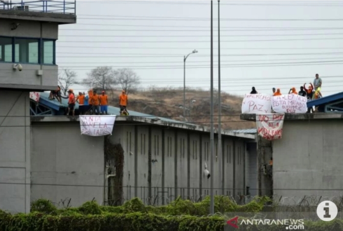Pada Sabtu, Presiden Lasso mendesak pengadilan konstitusi untuk mengizinkan militer memasuki kawasan penjara daripada hanya membantu pengamanan dari luar. (Reuters/Antara)