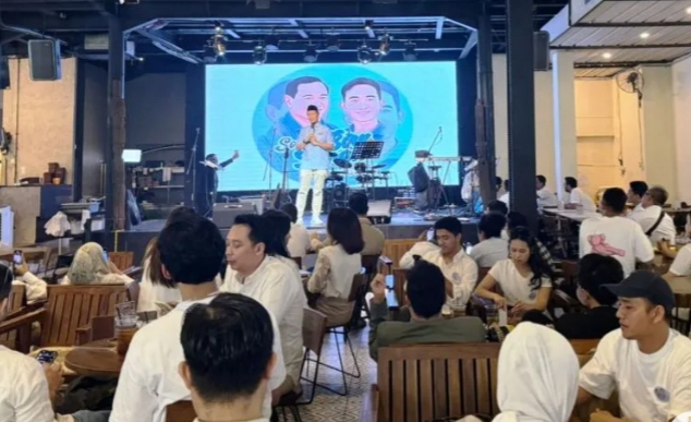 Arief Rosyid Hasan menghadiri silaturahmi dengan pengurus TKN Fanta Kreatif di Kemang, Jakarta Selatan, Senin (13/11). Perkumpulan tersebut berawal dari inisiatif beberapa pemengaruh dan pekerja kreatif muda yang mempercayai kepemimpinan Prabowo dan Gibran.
