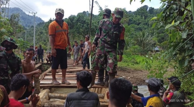“Untuk itu anggota kita bagi, sebagian dikerahkan untuk membuat jembatan darurat berbahan kayu dan bambu agar aktivitas warga tidak terhambat,” terangnya.