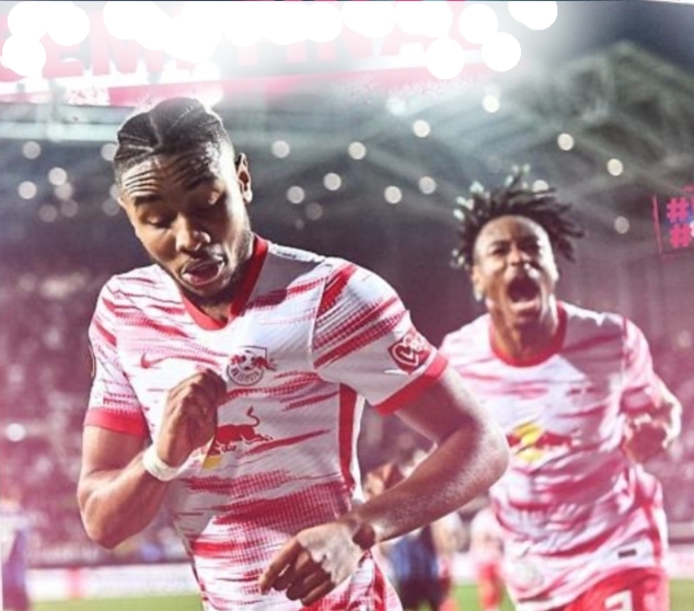 Ekspresi Christopher Nkunku usai mencetak gol kedua untuk kemenangan RB Leipzig. (Foto @rbleipzig)