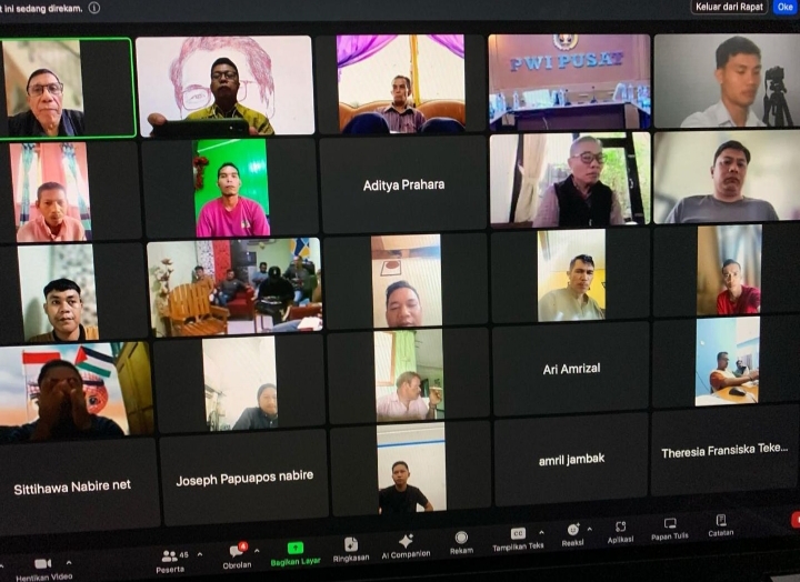 JAKARTA – Sebanyak 60 peserta dari Provinsi Papua Tengah dan Riau antusias mengikuti pelatihan jurnalistik pra-UKW yang diselenggarakan melalui Zoom meeting pada Senin (15/4). Ketua Umum PWI Pusat Hendry Ch Bangun membuka acara yang juga dihadiri Direktur LUKW PWI Pusat Dr Firdaus Komar.
