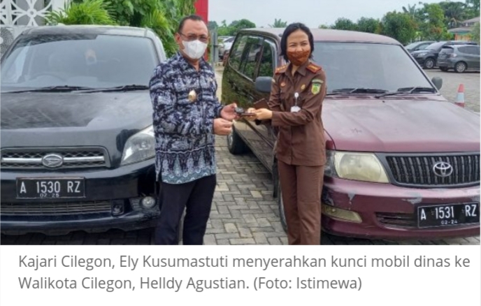 Pada Senin (14/6/2021), Korps Adhyaksa tersebut secara simbolis menyerahkan dua unit mobil dinas (mobdin) kepada pemerintah daerah yang selama ini berada di tangan pihak lain lantaran telah digadaikan oleh BW, salah seorang oknum ASN di Dinas Lingkungan Hidup (DLH) Cilegon.