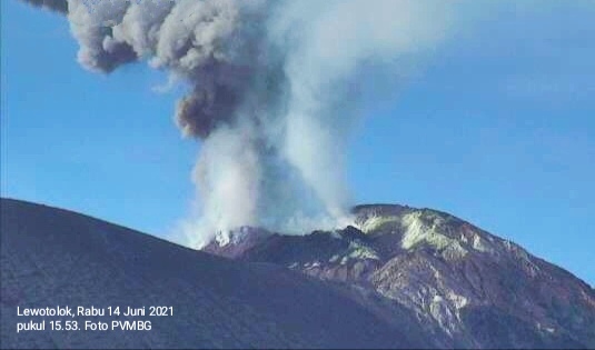 KUPANG – Gunung Ile Lewotolok di Kabupaten Lembata, Provinsi Nusa Tenggara Timur kembali menunjukkan aktivitasnya, Rabu (14/7/2021).