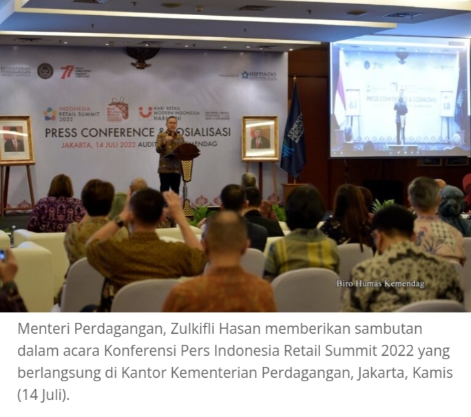 Oleh karena itu, pemerintah akan terus mendorong bisnis ritel tetap tumbuh, khususnya dalam masa pemulihan ekonomi pasca pandemi Covid-19. Hal ini disampaikan Mendag Zulhas dalam acara peluncuran Indonesia Retail Summit2022 yang digelar secara hibrida di Kantor Kemendag, Jakarta, pada hari ini, Kamis (14/7).