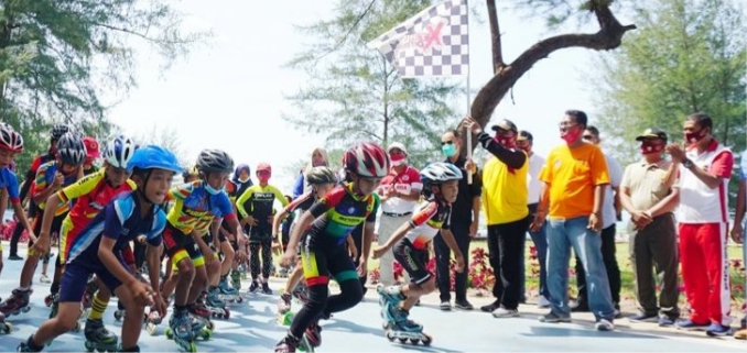 PARIAMAN – Plt Walikota Pariaman Mardison Mahyuddin membuka Pariaman Fun Roller Skating Tour Race 2020 yang bertempat di Sirkuit Sepatu Roda Pantai Cermin, Kota Pariaman, Sabtu (14/11/2020).