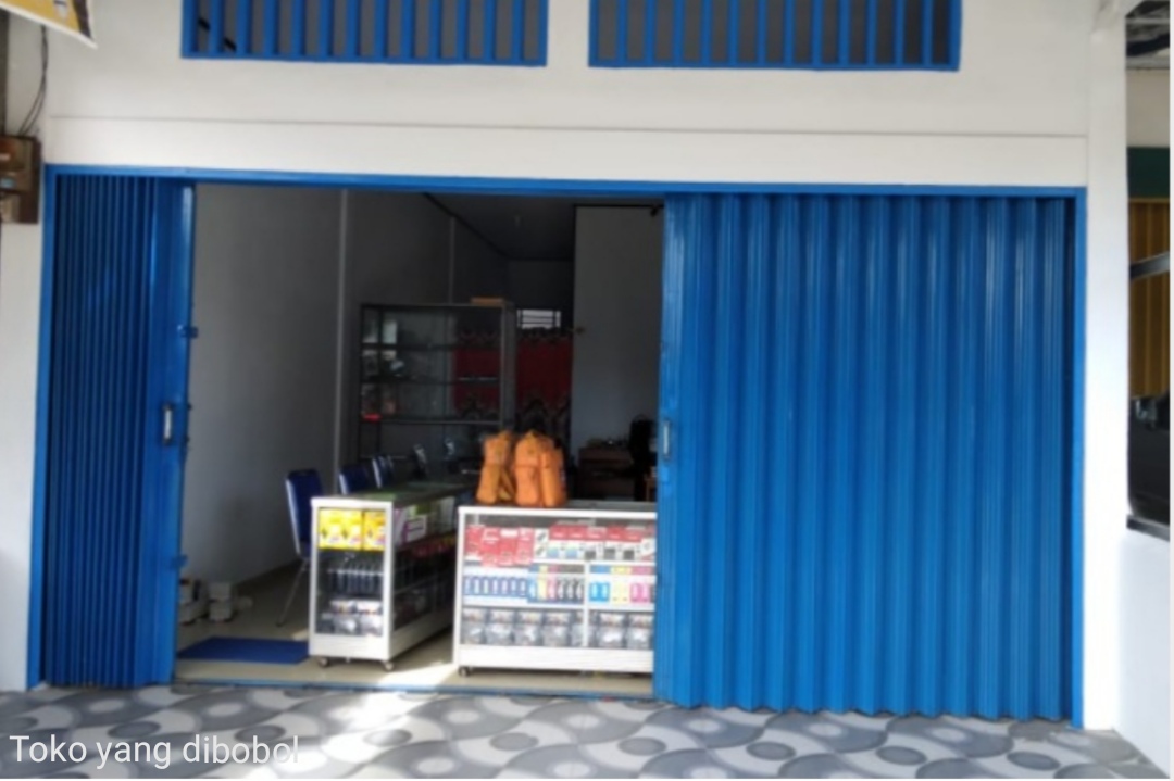 Sesampainya di toko, korban mendapati pintu gulung (rolling door) toko dalam keadaan tidak tertutup rapat dan kunci gemboknya terbuka.