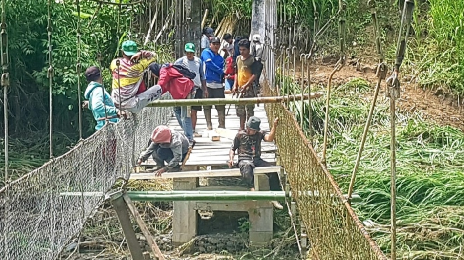 Perbaikan jembatan merupakan inisiatif warga secara swadaya.