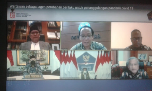 Hal tersebut disampaikannya dalam kegiatan pembekalan Wakil Presiden Republik Indonesia Ma’ruf Amin untuk Peserta Fellowship Jurnalisme Perubahan Perilaku, Senin (14/12/2020) melalui tautan link zoom diikuti ribuan peserta FJPP ubahlaku bertemakan ‘wartawan sebagai agen perubahan perilaku untuk penanggulangan pandemic covid-19’, yang dipandu Agus Sudibyo selaku moderator.