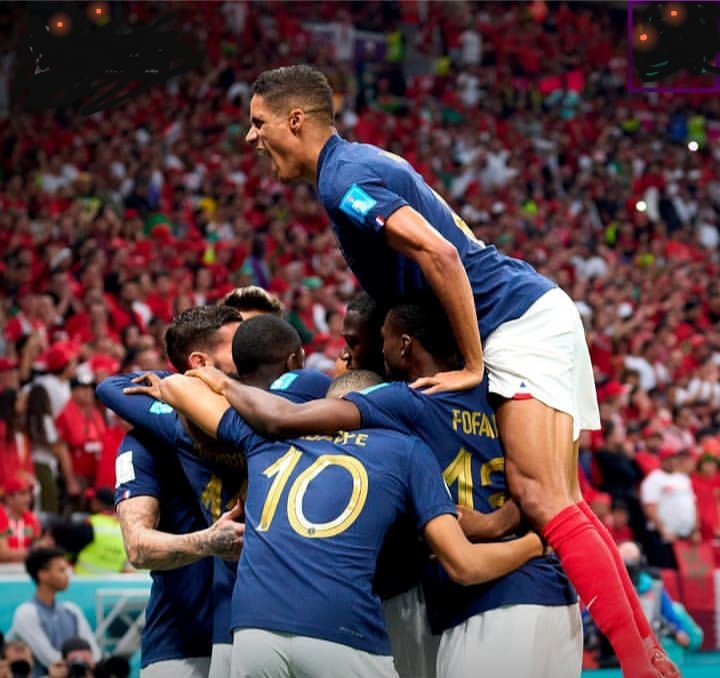 Para pemain Prancis merayakan gol Randal Kolo Muani pada pertandingan semifinal Piala Dunia 2022 melawan Maroko. (Instagram @fifaworldcup)