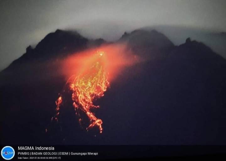 YOGYAKARTA – Mulai hari Kamis – Jum’at (14-15/1/21) pukul 00.00 – 07.00, Gunung Merapi tidak cuma keluarkan aktivitas vulkanik berupa guguran lava pijar, tapi juga guguran awan panas.