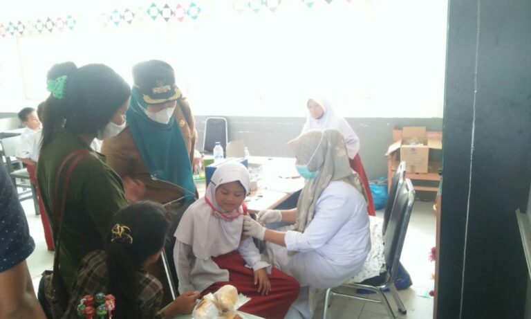 BAWAN—Setelah sebelumnya mendapat penolakan dari banyak orangtua murid, akhirnya kegiatan vaksinasi anak usia 6-11 tahun di SDN 19 Pasir Tinggi, Jorong Anak Aia Kasiang, Nagari Bawan, kecamatan Ampek Nagari, Senin (14/2).