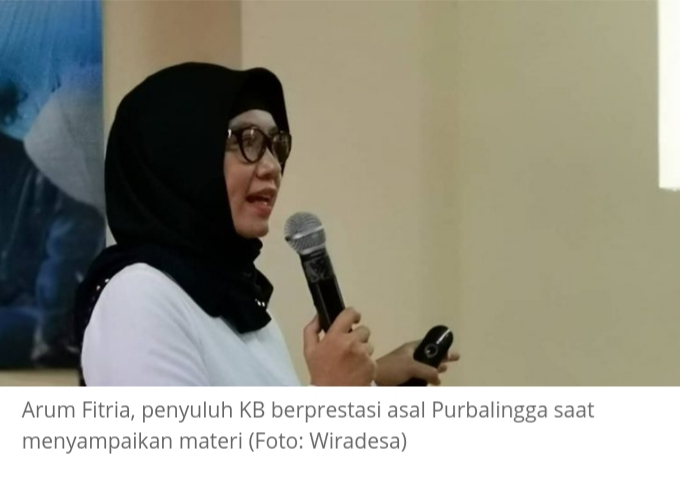 PURBALINGGA–Prestasi tingkat nasional berhasil ditorehkan oleh Arum Fitria Ardiyani, penyuluh KB (Keluarga Berencana) dari Kecamatan Padamara, Kabupaten Purbalingga.