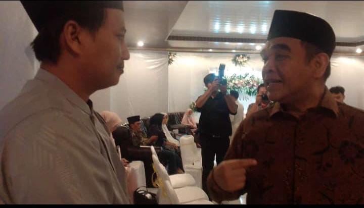 Sekjen Partai Gerindra Ahmad Muzani menyempatkan menyapa pembaca doa sebelum akad nikah dilaksanakan. (Istimewa)