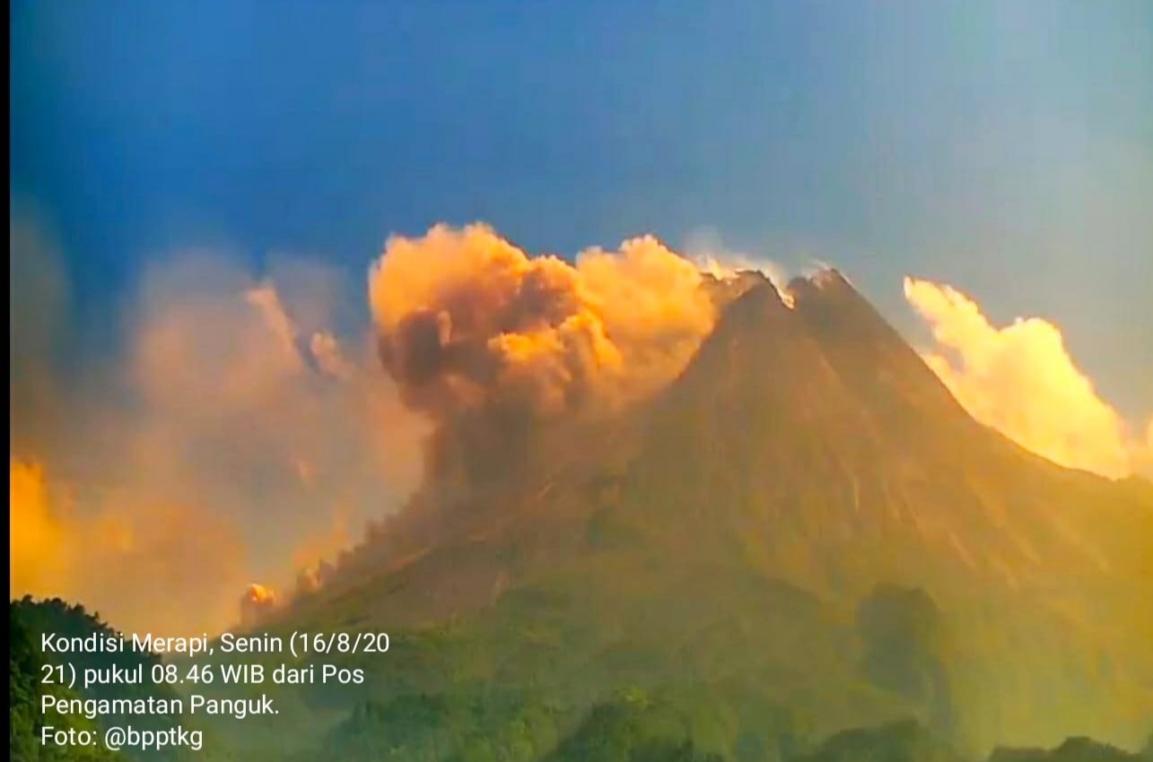 YOGYAKARTA – Guguran awan panas terus berlangsung dari puncak Gunung Merapi di perbatasan Daerah Istimewa Yogyakarta dan Jawa Tengah, sepanjang pergantian hari Minggu-Senin (15-16/8/2021).