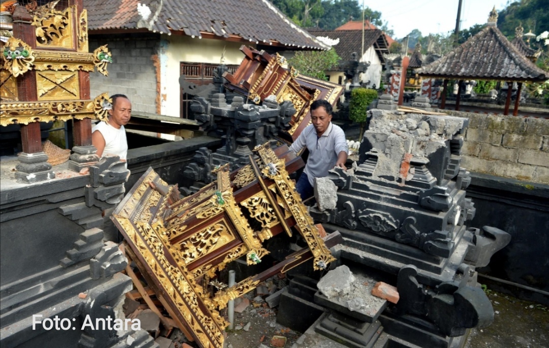 Guncangan ini menyebabkan sejumlah kerusakan bangunan di Kecamatan Rendang, Karangasem, Bali.