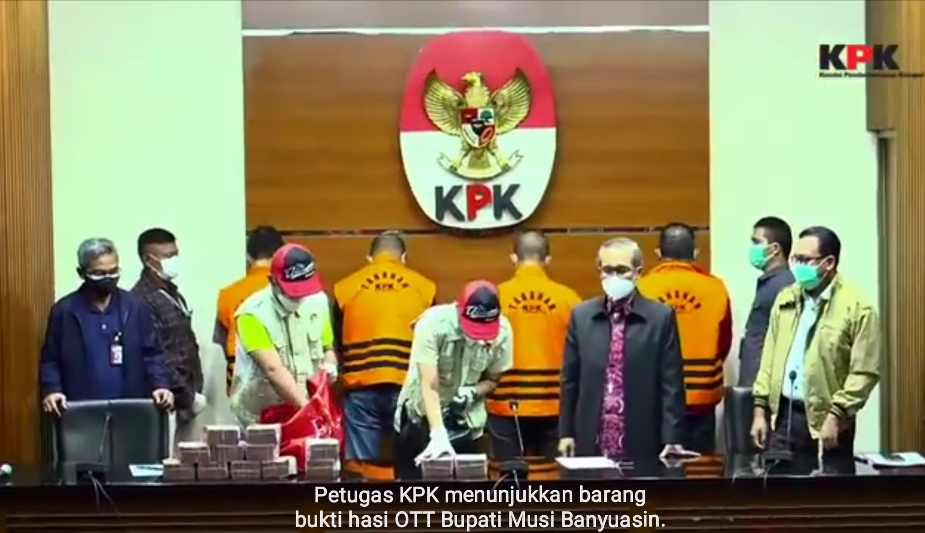 Uang pertama diamankan penyidik KPK saat mengamankan Kadis PUPR Kabupaten Musi Banyuasin, Herman Mayori (HM). Uang itu dibungkus kantung plastik.