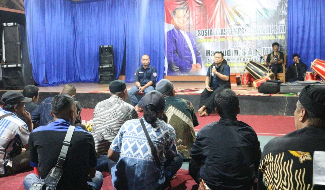 “Basis nilainya hukan hanya antroposentris, tetapi bassicalynya nilai ketuhanan. Nilai ketuhanan dan kemanusiaan menjadi satu kesatuan. Maka itu, harapan terbesarnya yakni terwujudnya sebuah bangsa yg beriman dan bertakwa,” papar anggota MPR RI, Haerudin, S.Ag., MH saat acara sosialisasi empat pilar MPR RI yang digagas Yayasan Duha Center di Padepokan Manda Agung Desa Mandala Kasih, Kecamatan Pamengpeuk, Kabupaten Garut, Sabtu (14/11/2020) malam.