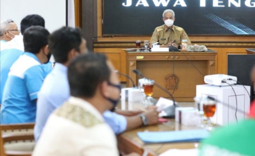 SEMARANG – Gubernur Jateng Ganjar Pranowo mengundang sejumlah buruh dari Konfederasi Serikat Pekerja Indonesia (KSPI) ke kantornya, Senin (15/11/2021).