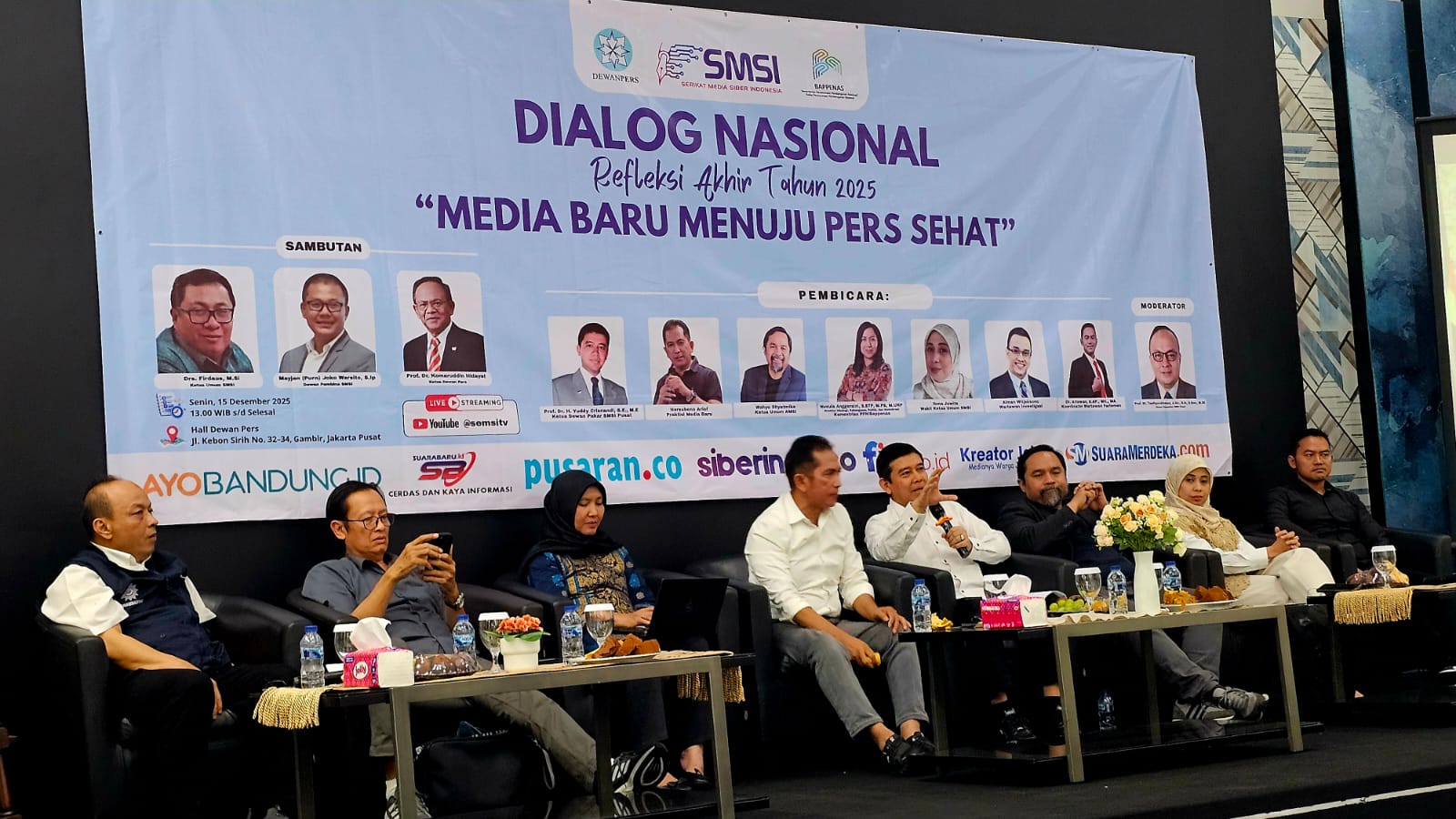 JAKARTA – Serikat Media Siber Indonesia (SMSI), menggelar Dialog Nasional Refleksi Akhir Tahun 2025, Senin (15/12/2025) di Hall Dewan Pers, Jakarta, dengan fokus utama pada tantangan masa depan “Media Baru Menuju Pers Sehat.”