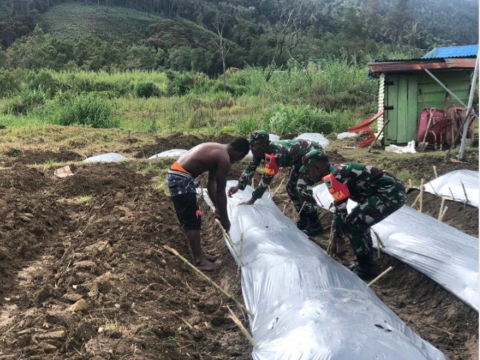 PAPUA BARAT – Babinsa Koramil 1801-05/Anggi mengajak warga Kampung Irai, Kabupaten Pegaf, Distrik Anggi membuka lahan tidur menjadi lahan produktif untuk mengurangi beban ekonomi yang dirasakan masyarakat, Selasa (16/2/2020).