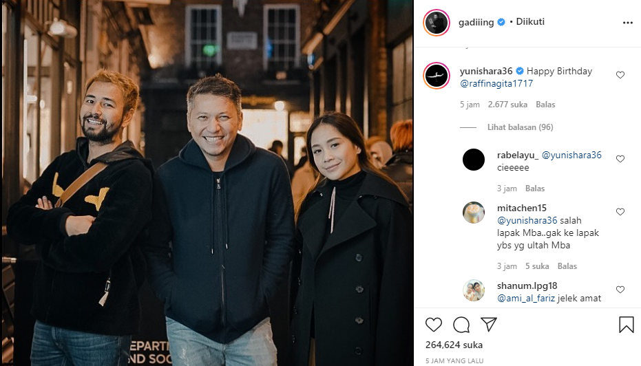“Happy Birthday @raffinagita1717,” tulis Yuni singkat di kolom komentar unggahan Gading.