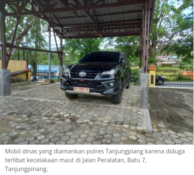 “Mobil dinas Wawako Tanjungpinang kita amankan karena diduga terlibat dalam kecelakaan maut itu. Mobil dinas itu diamankan untuk proses penyelidikan,” jelas AKP I Made Putra, Rabu (16/2/2022).