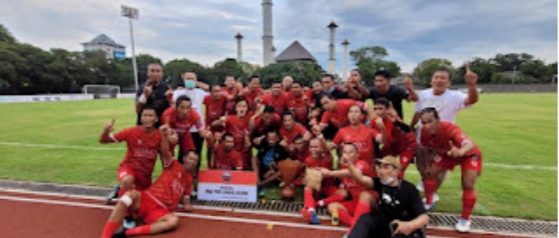 SOLO–Tim Seksi Wartawan Olahraga (Siwo) DKI Jakarta tampil sebagai juara Turnamen Sepakbola Piala Walikota Solo 2022, di final menang telak atas Tim Siwo Jawa Timur , 3-0 (0-0) di Stadion Sriwedari, Solo, Kamis (17/2/2022).