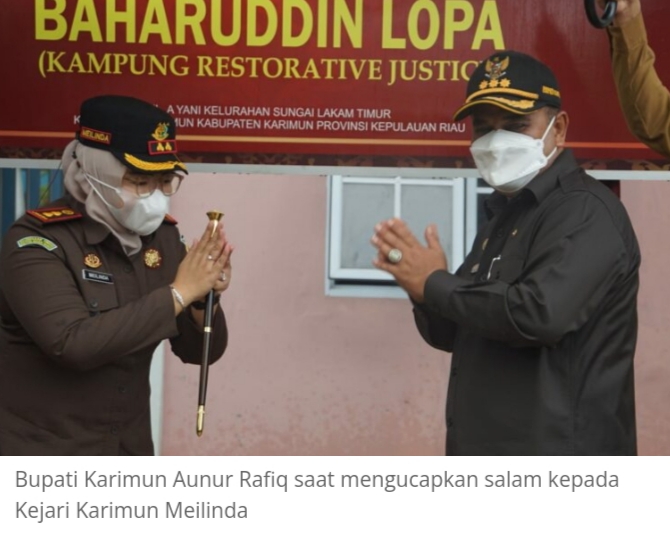 Dalam kesempatan tersebut, Bupati karimun Aunur Rafiq menyampaikan apresiasi kepada pihak Kejaksaan Negeri Karimun yang telah membentuk kampung restorative justice.