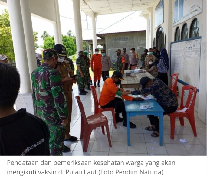 Menurut Dandim, vasinasi merupakan salah satu upaya pemerintah untuk memutus mata rantai penyebaran Covid-19. Meski diujung pulau, namun animo masyarakat cukup tinggi untuk ikut. Ada 250 orang yang antre untuk ikut vaksin.