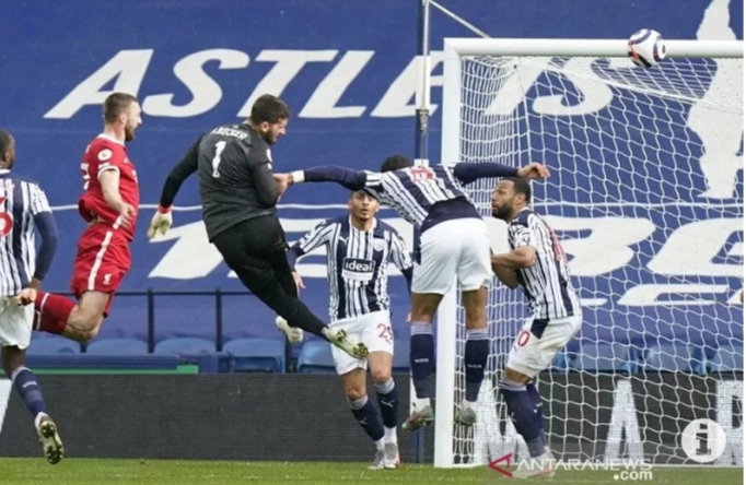 JAKARTA–Alisson Becker memangkas jarak Liverpool ke empat besar klasemen Liga Inggris setelah mencetak gol penentu kemenangan atas West Bromwich Albion 2-1 dalam laga pekan ke-36 di Stadion The Hawthorns, Senin WIB.