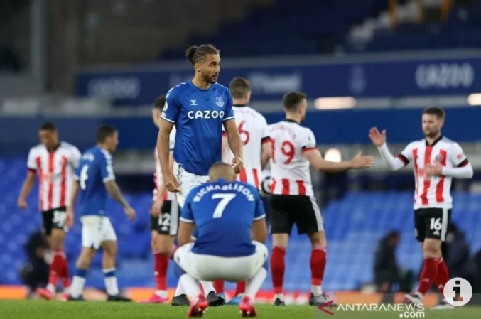 JAKARTA–Mimpi Everton tampil di kompetisi Eropa musim depan meredup seiring kekalahannya dari tim juru kunci Sheffield United 0-1 dalam laga pekan ke-36 Liga Inggris di Stadion Goodison Park, Liverpool, Senin WIB.