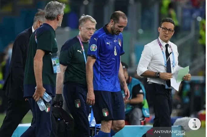 ROMA–Kapten tim nasional Italia Giorgio Chiellini terpaksa meninggalkan lapangan karena mengalami cedera pada babak pertama pertandingan Piala Eropa 2020 melawan Swiss di Roma, Kamis dinihari WIB.