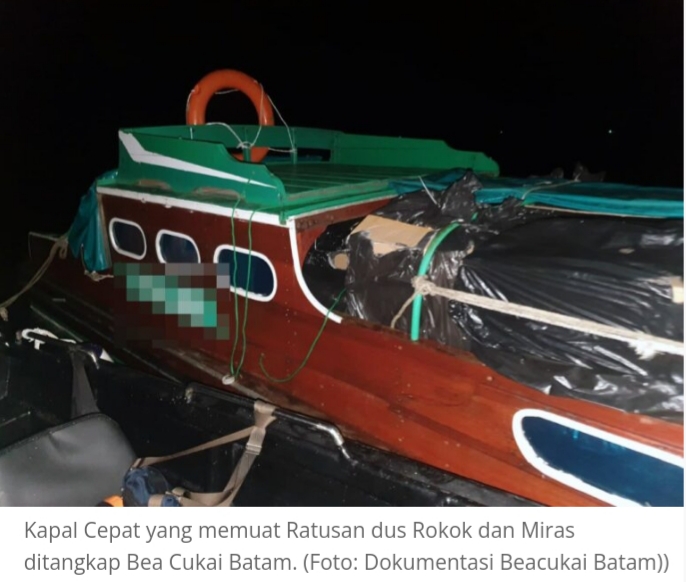 Dalam rilis Beac Cukai Batam itu disebutkan, kapal yang ditahan itu berusaha menyelundupkan Barang Kena Cukai (BKC) berupa Hasil Tembakau (HT) ilegal sebanyak 80 karton. Selain itu ada juga berbagai jenis minuman beralkohol atau minuman mengandung etil Alkohol (MMEA) sebanyak 58 karton.